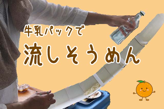 親子で作る牛乳パック工作|そうめん流し